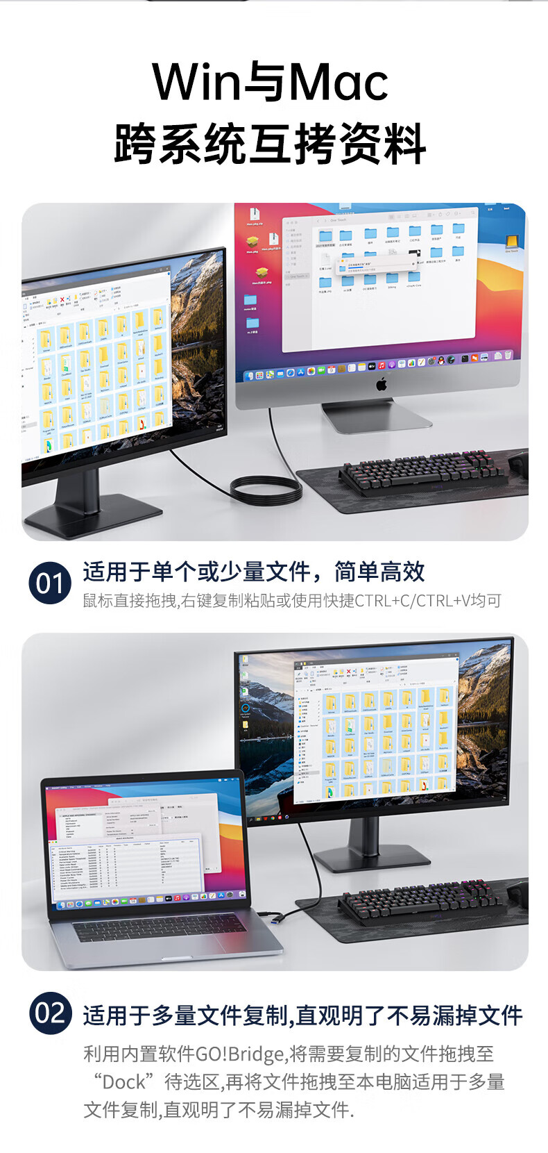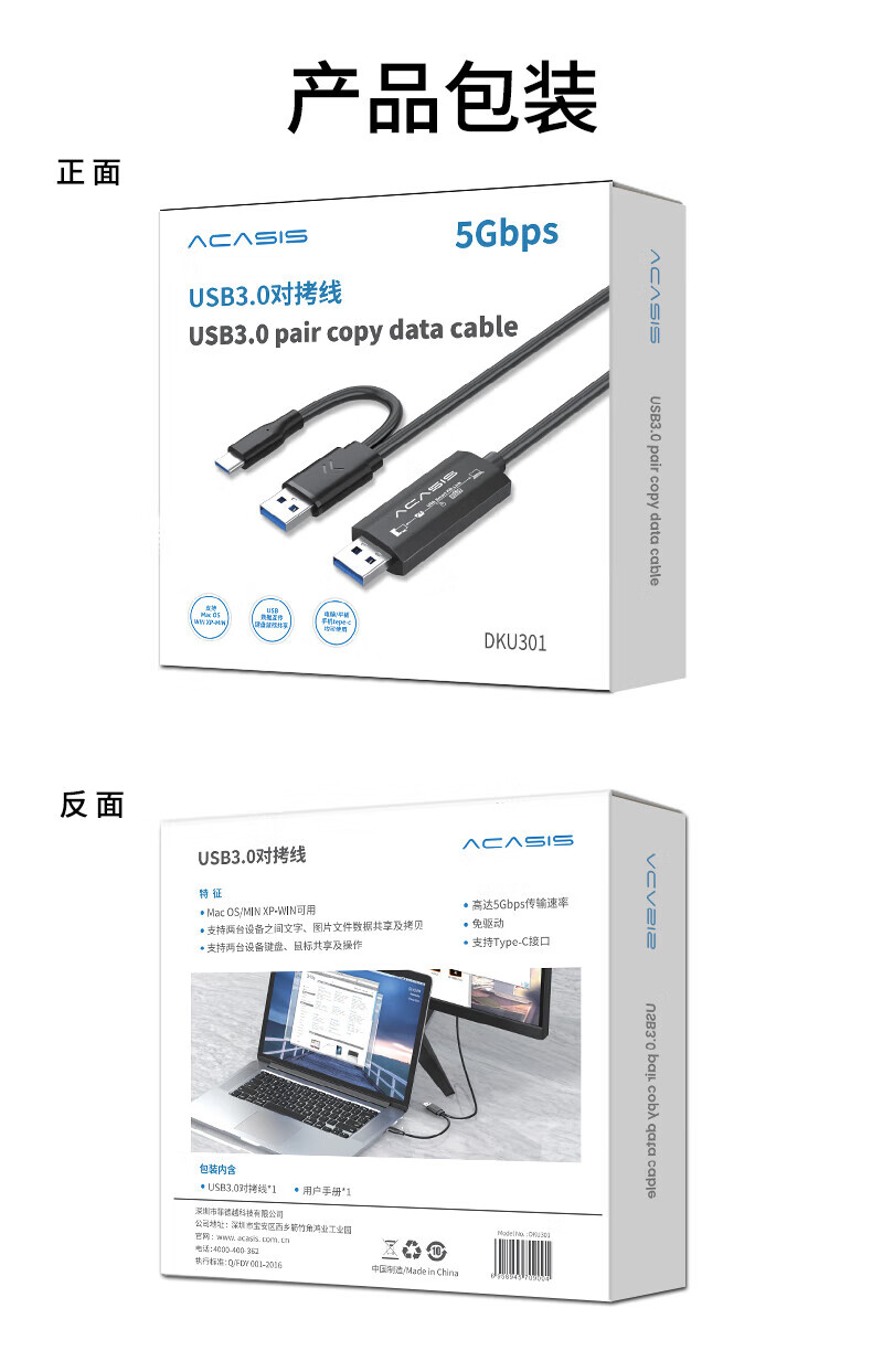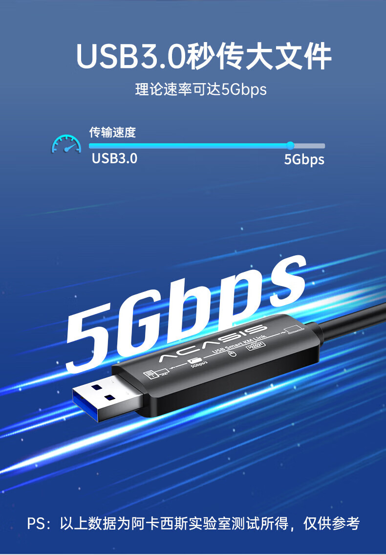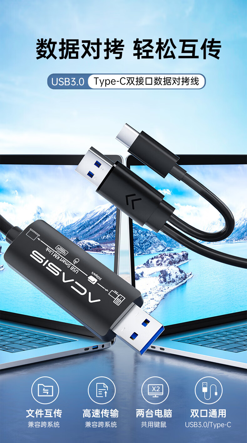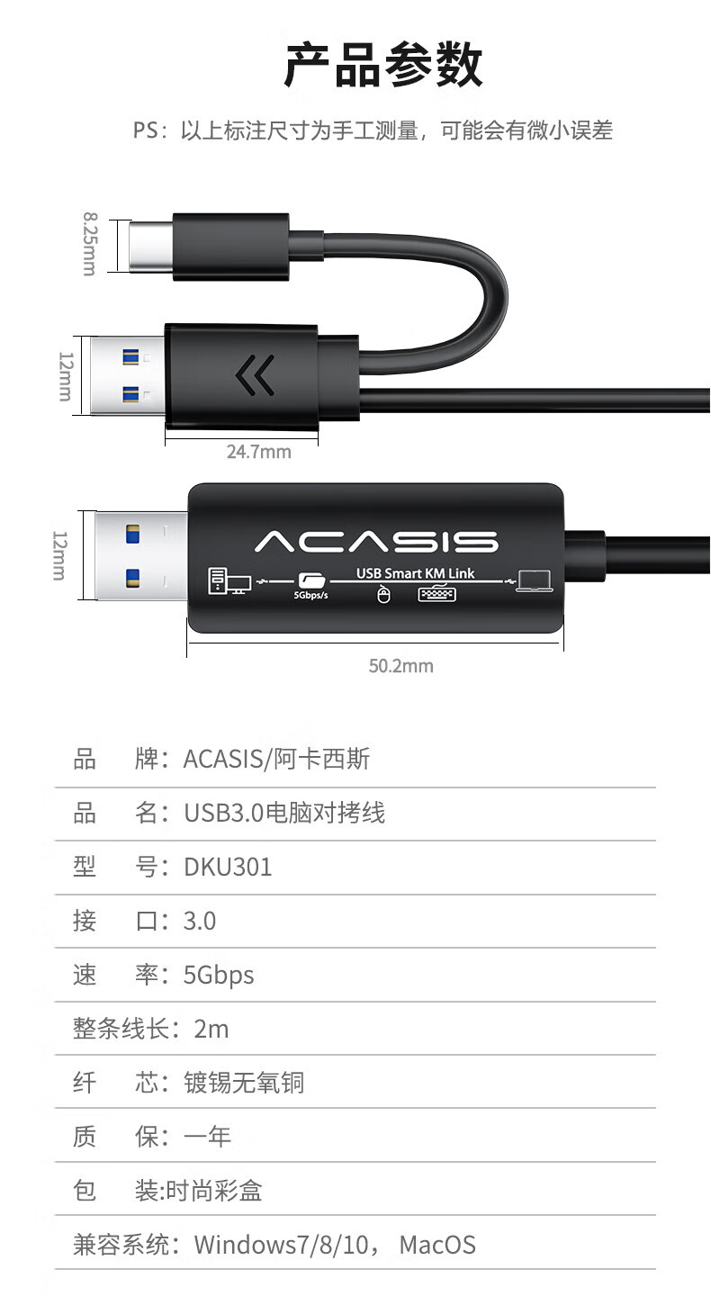 阿卡西斯/acasis ACS01 数据线 USB3.0对拷线公对公电脑数据互传Type-c连接线共享鼠标键盘免驱适用笔记本台式机双接口USB对拷线 【USB3.0对拷线】2米